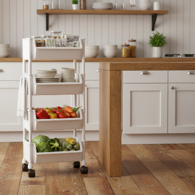 La desserte cuisine blanche mobile à roulettes avec ses 3 ou 4 niveaux offre une capacité de rangement impressionnante. Vous pouvez organiser vos affaires par catégorie : ustensiles en haut, épices au milieu, produits d'entretien en bas. Cette organisation verticale vous fait gagner un temps précieux quand vous cuisinez.