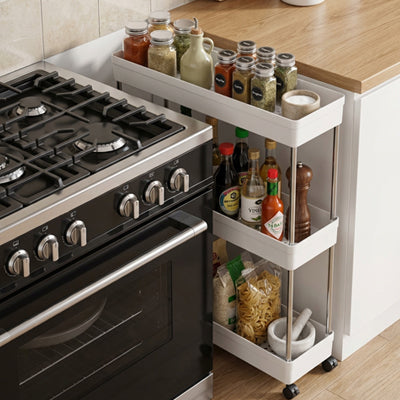 Les modèles à roulettes se déclinent en plusieurs formats. Les versions ultra-fines, comme cette desserte à roulettes cuisine ultra-fine de 13cm, se glissent dans les espaces les plus étroits. Parfaites pour se faufiler entre le frigo et le mur, elles offrent un rangement vertical intelligent qui exploite chaque centimètre disponible. D'autres modèles plus larges proposent 3 ou 4 niveaux spacieux pour accueillir tout votre matériel de cuisine.